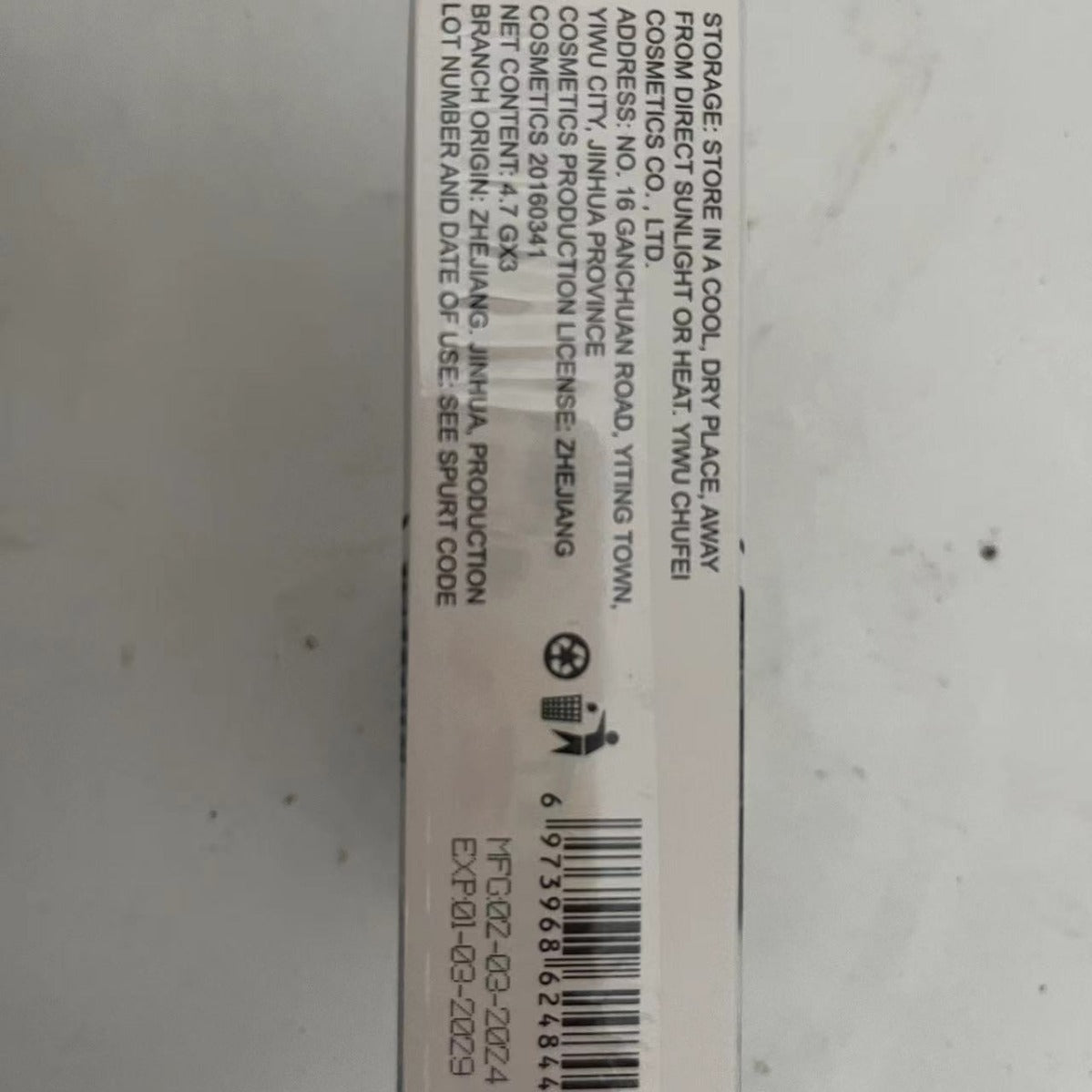 Non-special cosmetics registration certificate number; Zhejiang G makeup network registration number 2019013726