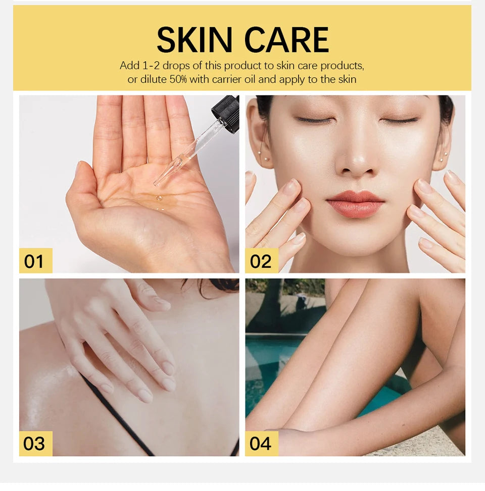 1. Skin care: Add 1-2 drops of this product to skin care products, or dilute 50% with carrier oil and apply to the skin
