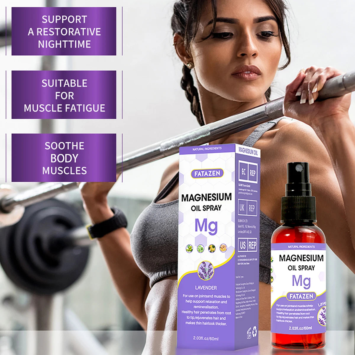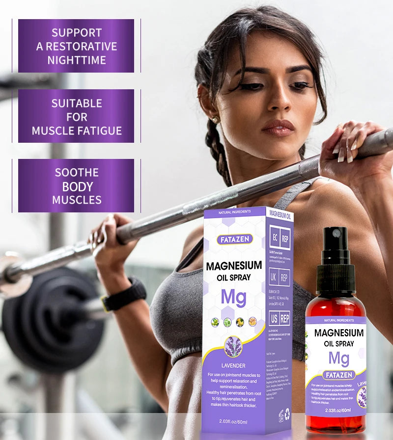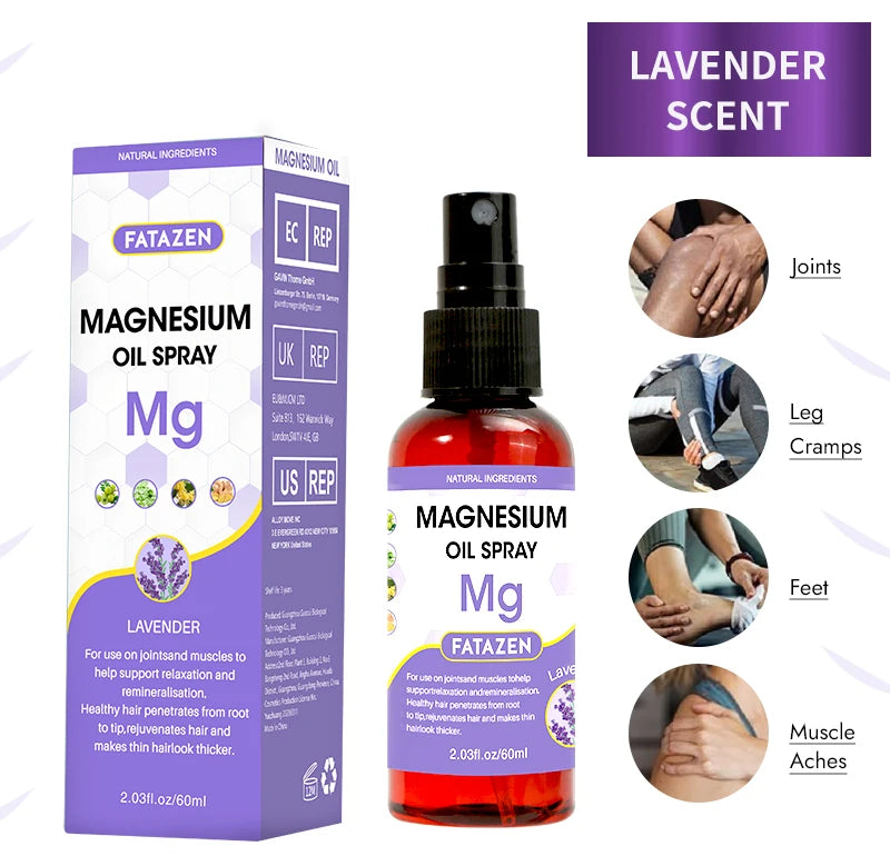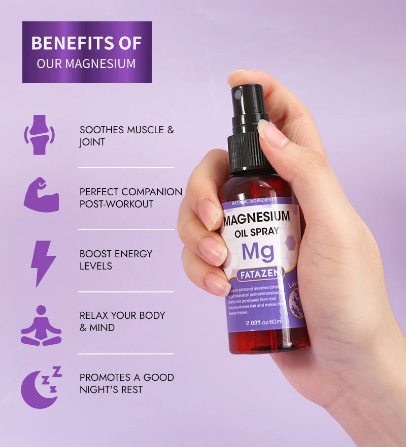 60ml/Bottle Lavender Magnesium Oil Spray, Refreshing and Non Greasy Body Relaxation Spray, Suitable for Summer Sport Daily Use