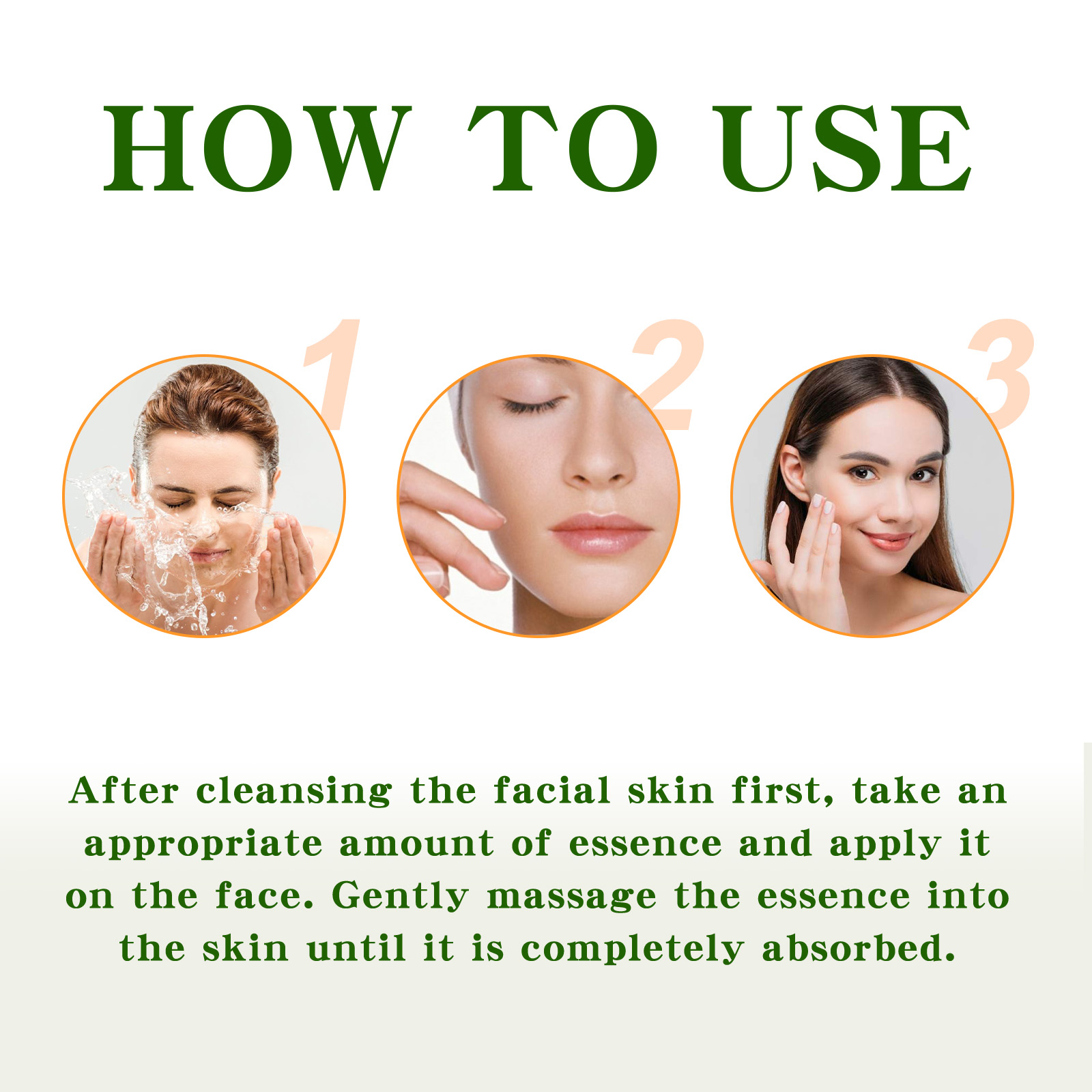 Our anti-wrinkle serum contains vitamin C, niacinamide, and hyaluronic acid. It can help to lighten the complexion, make your skin more radiant, help to improve dry skin and keep skin deep hydrated. Its use method is very simple: after cleansing, take an appropriate amount of essence evenly apply to the face. Massage the serum gently until it is fully absorbed into the skin. And can moisturize and firm the skin.