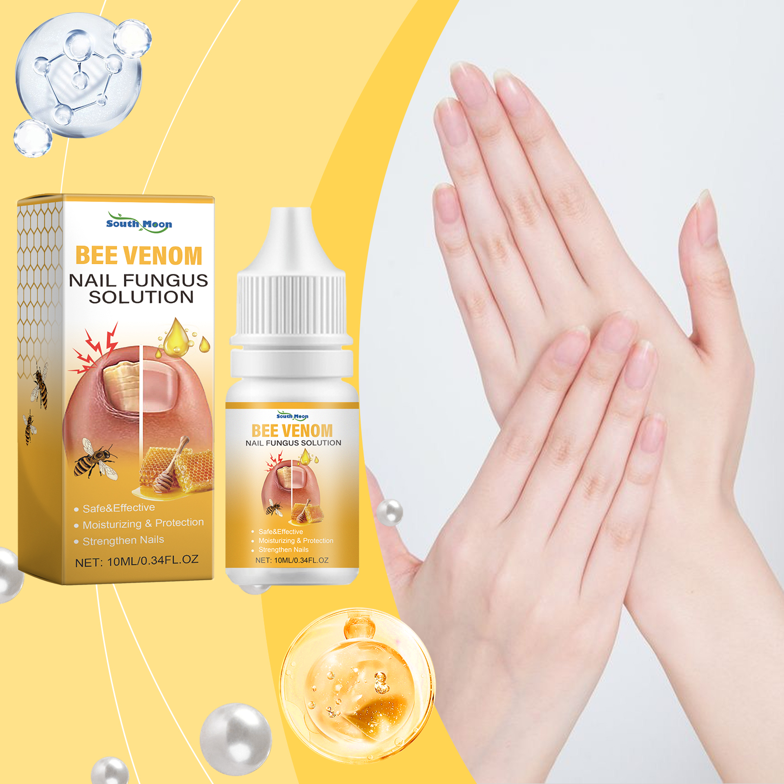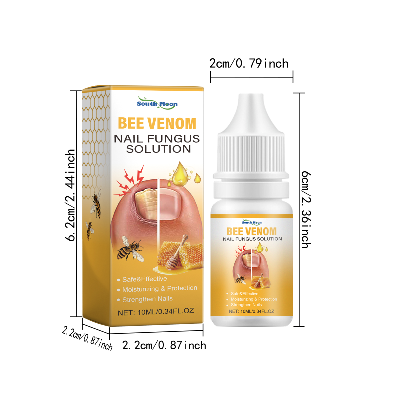 Our bee Venom nail care essence contains acetic acid, disodium EDTA, bee venom. It can improve nail strength and effectively prevent daily nail breakage. Provides natural antibacterial protection to keep nails clean. Deeply nourishes and maintains moisture in the nails and surrounding skin. Stimulate the microcirculation around the nail and enhance nail health. Its use is simple: 1. File the affected area of the nail, clean the nail, and then keep it dry. 2. Evenly apply the product to the entire surface of the affected nail. 3. Gently massage until fully absorbed. Bee Venom nail Care Essence forms a protective layer that resists external damage and maintains nail integrity. Deep nutrition, promote healthy nail growth, improve nail texture.