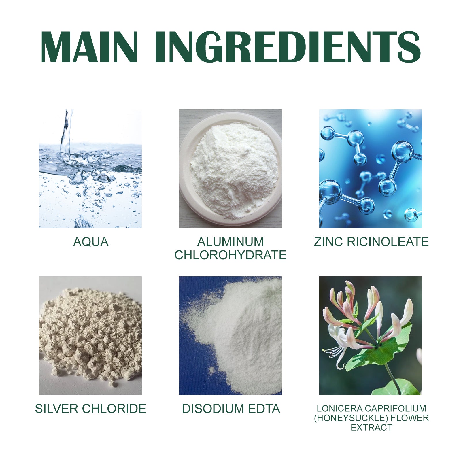 Our armpit deodorant spray contains aluminium hydroxide chloride and zinc ricinoleate. It can effectively neutralize and reduce armpit odor, keep armpits fresh and dry, absorb excess sweat, reduce the unpleasant smell generated by sweat, make you feel cool and clean, enjoy a comfortable life. Its application method is very simple: after cleaning the armpit skin, spray an appropriate amount of this product on the underarm and gently massage to help absorb it. Helps to quickly absorb into the skin, leaving you to enjoy fresh, non-greasy armpits.