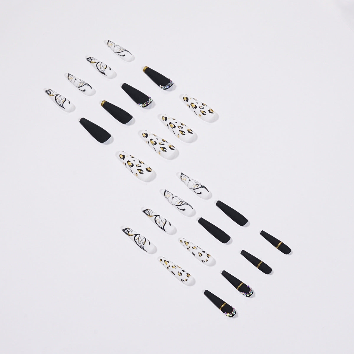 Butterfly Wearing Leopard-Print Nail Piece Scrub Manicure Wearing Nail Patch With Drill Nail Patch