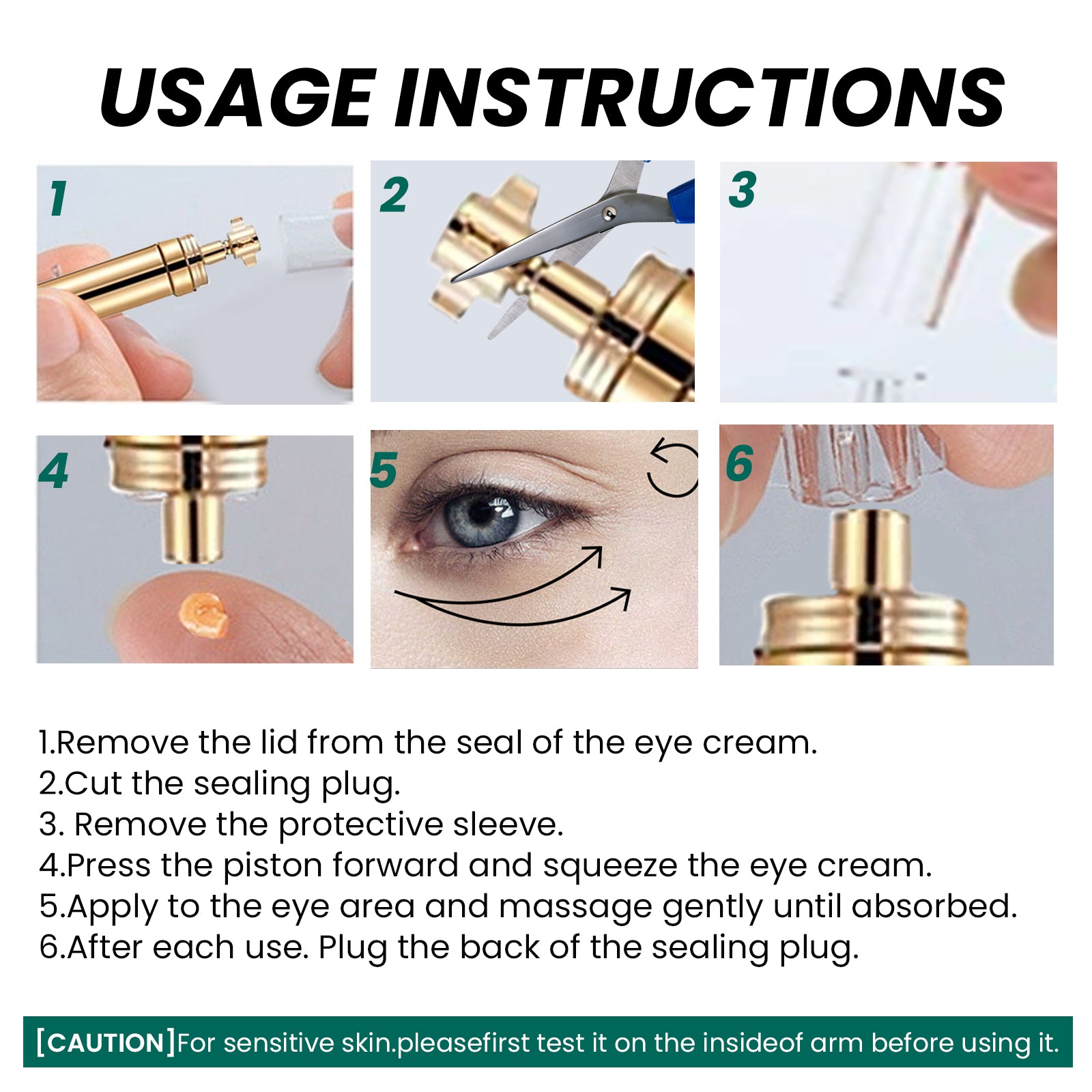 Our collagen firming eye cream contains Centella asiatica extract, collagen, sodium hyaluronate. It can improves the skin's ability to repair itself from the root, while improving the elasticity and firmness of the skin, tightens the skin and promotes active collagen growth. Its use method is very simple: Remove the cover from the sealing area of the eye cream, cut open the sealing plug, remove the protective cover, press the piston forward and squeeze the eye cream, apply to the eyes and gently massage until absorbed. After each use, plug the back of the sealing plug. Bring soothing moisture to your parched skin, experience radiant skin.