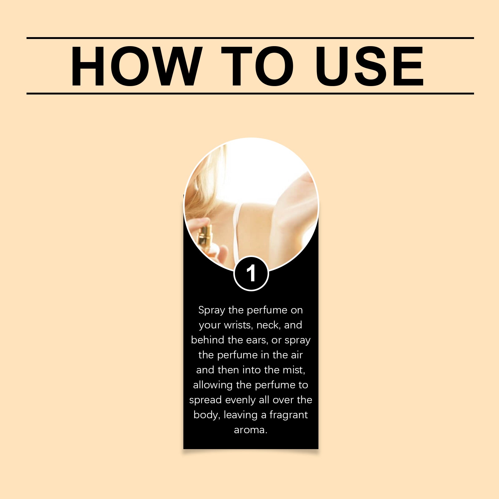 Our eau de toilette spray contains citrus orange peel extract, peony root extract, cinnamon extract. It gives off a sweet smell and protects the skin. Provides a fresh floral scent and moisturizing effect. Gives off a charming aroma to keep you fresh. Its application is simple: spray the perfume on the wrists, neck and behind the ears, or spray the perfume in the air and then spray into the atomizer, allowing the perfume to spread evenly throughout the body, leaving a fragrant aroma. No irritating ingredients, suitable for all skin types, safe to use. Highly concentrated formula, long-lasting fragrance, all day long.