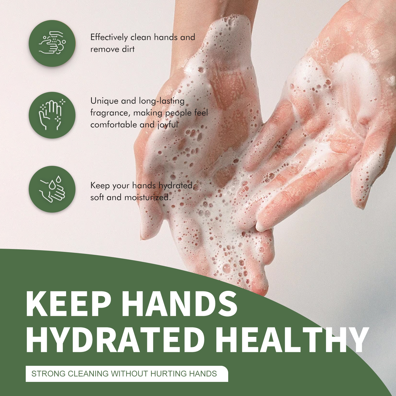 Our Gentle Clean Foaming Hand Soap contains Glycerin, Eucalyptus Oil, Mentha Viridis(Spearmint)Leaf Oil. It can effectively clean hands, remove dirt, ensure the cleanliness of hands, help keep hands moisture, make hands soft and moist. Its use method is very simple: first clean hands with clean water, squeeze the appropriate amount of hand sanitizer in the palm, rub hands, and finally rinse with water. It can effectively remove stains and keep your hands clean.