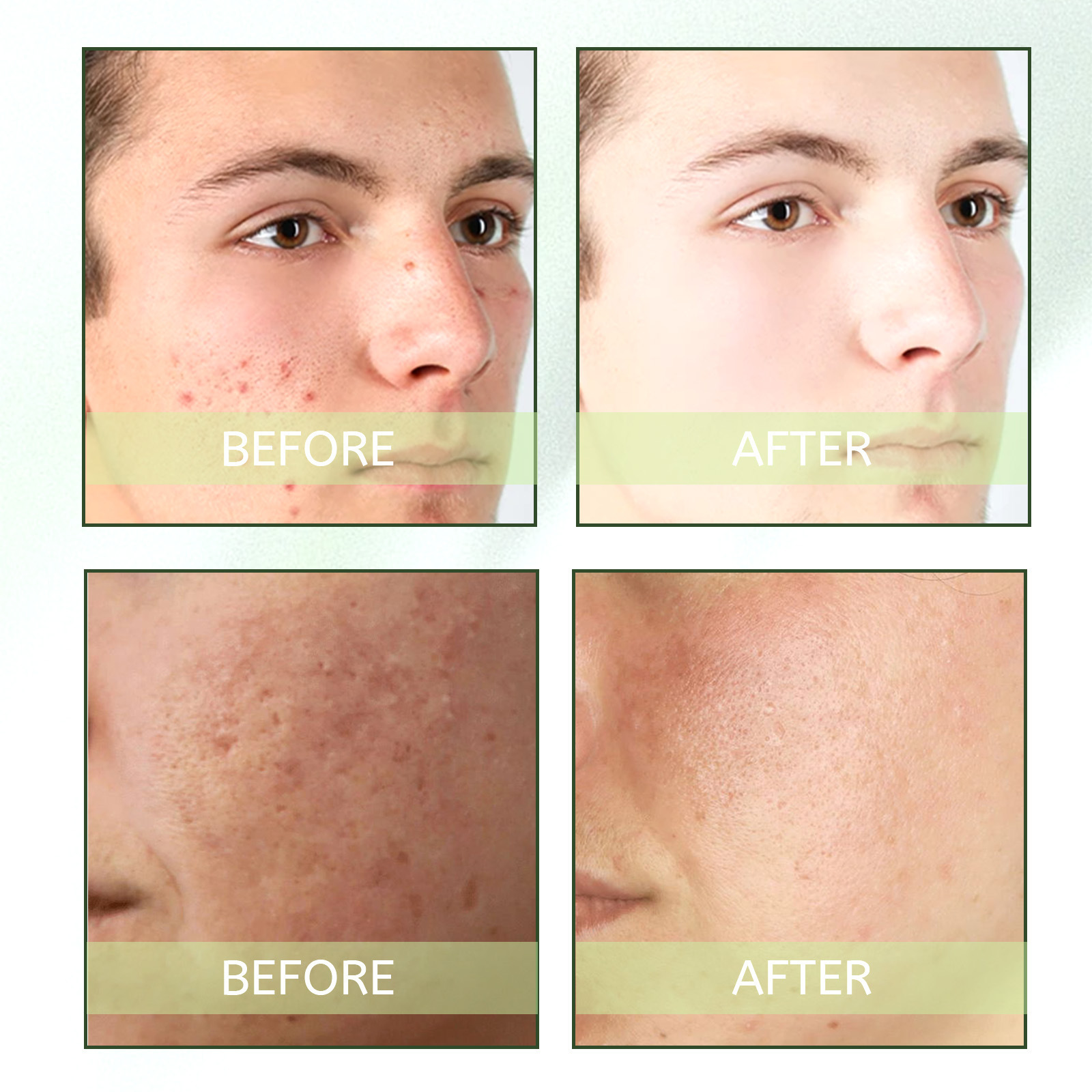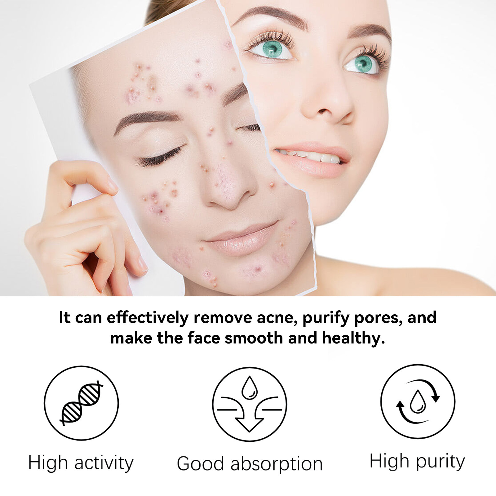 Our Herbal Acne Serum contains Glycerin, Glycyrrhiza Glabra(Licorice)Root Extract, Camellia Sinensis Leaf Extract. It can balance facial water and oil, help remove dirt and oil from pores, keep skin healthy, repair damaged skin, reduce oil production, reduce acne and acne. Its use method is very simple: after cleansing, take appropriate amount of product evenly apply to the acne area, avoid the eye area, and gently massage until absorbed. It can effectively remove acne, purify pores, and make the face smooth and healthy.