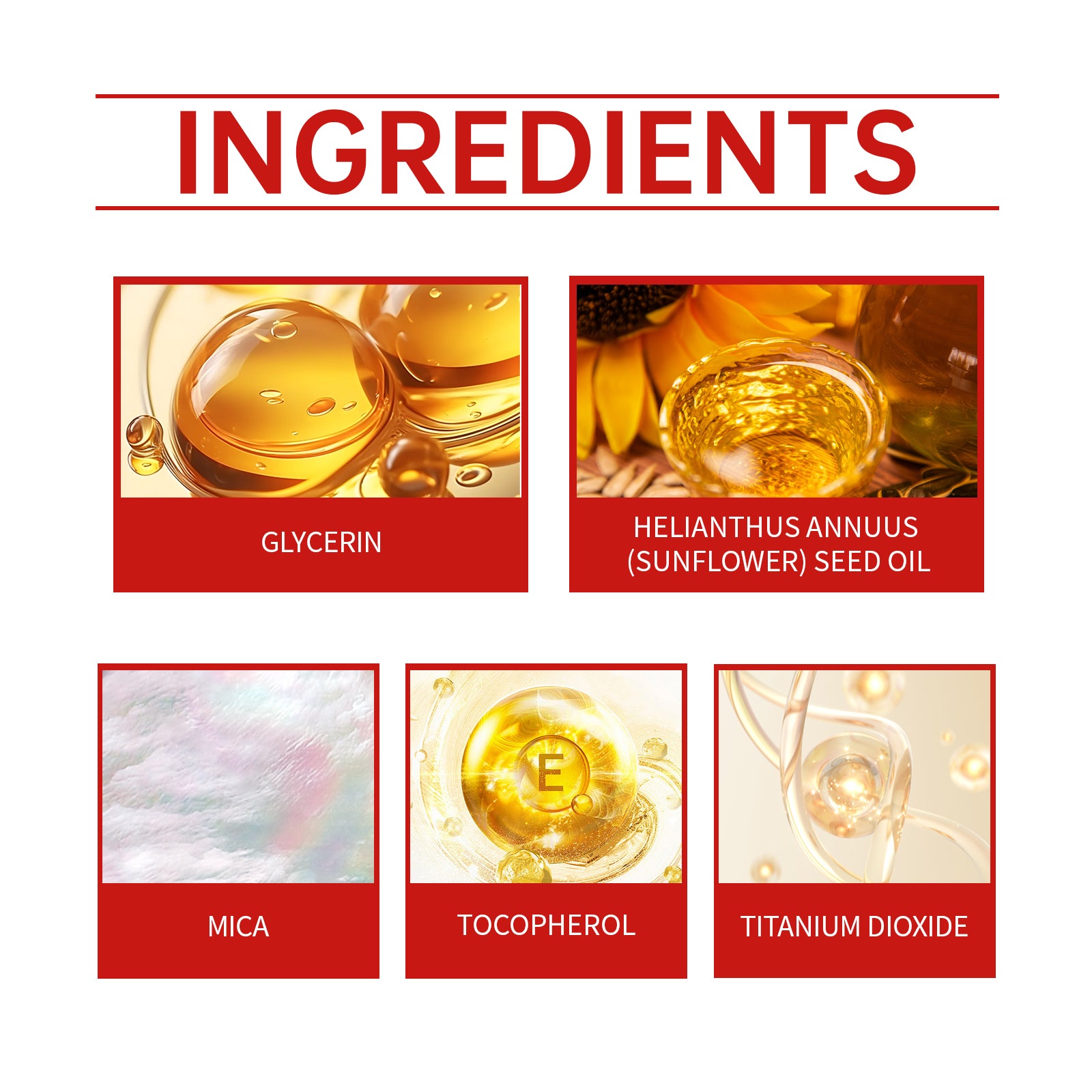 Our lip glazes contain vitamin E, titanium dioxide. It moisturizes the lips and prevents dryness. The way to use it is simple: gently unscrew the lid of the lip gloss, take out the lip brush, apply the right amount of lip glaze with the lip brush, starting from the center of the lip and evenly applying the lip gloss outward. And can provide bright colors, lasting and vivid.