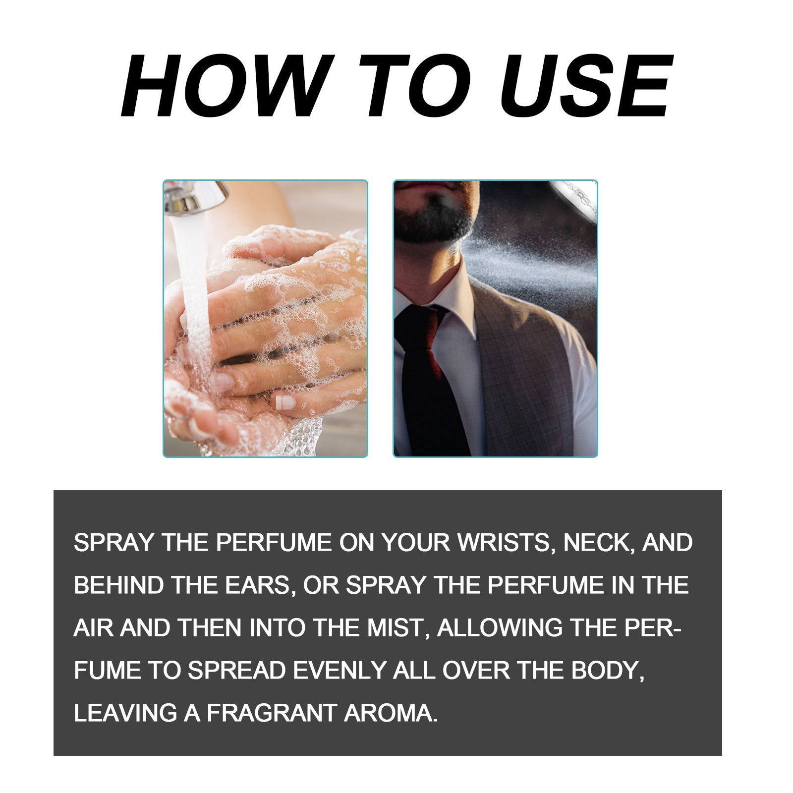 Our Eau De Toilette contains Malus Domestica Fruit Extract, Cedrus Atlantica Bark Extract, Citrus Aurantium Amara(Bitter Orange)Peel Extract. It can enhance your charm and infectivity, make yourself stand out in social situations, provide a charming blend of notes, exude masculinity and maturity to attract the attention of others. Its use method is very simple: spray the perfume on the wrists, neck and behind the ears, or spray the perfume in the air first, and then spray into a mist, so that the aroma is evenly dispersed throughout the body, leaving a fragrant aroma. It can boost your confidence, enhance social interaction, and make you more attractive.