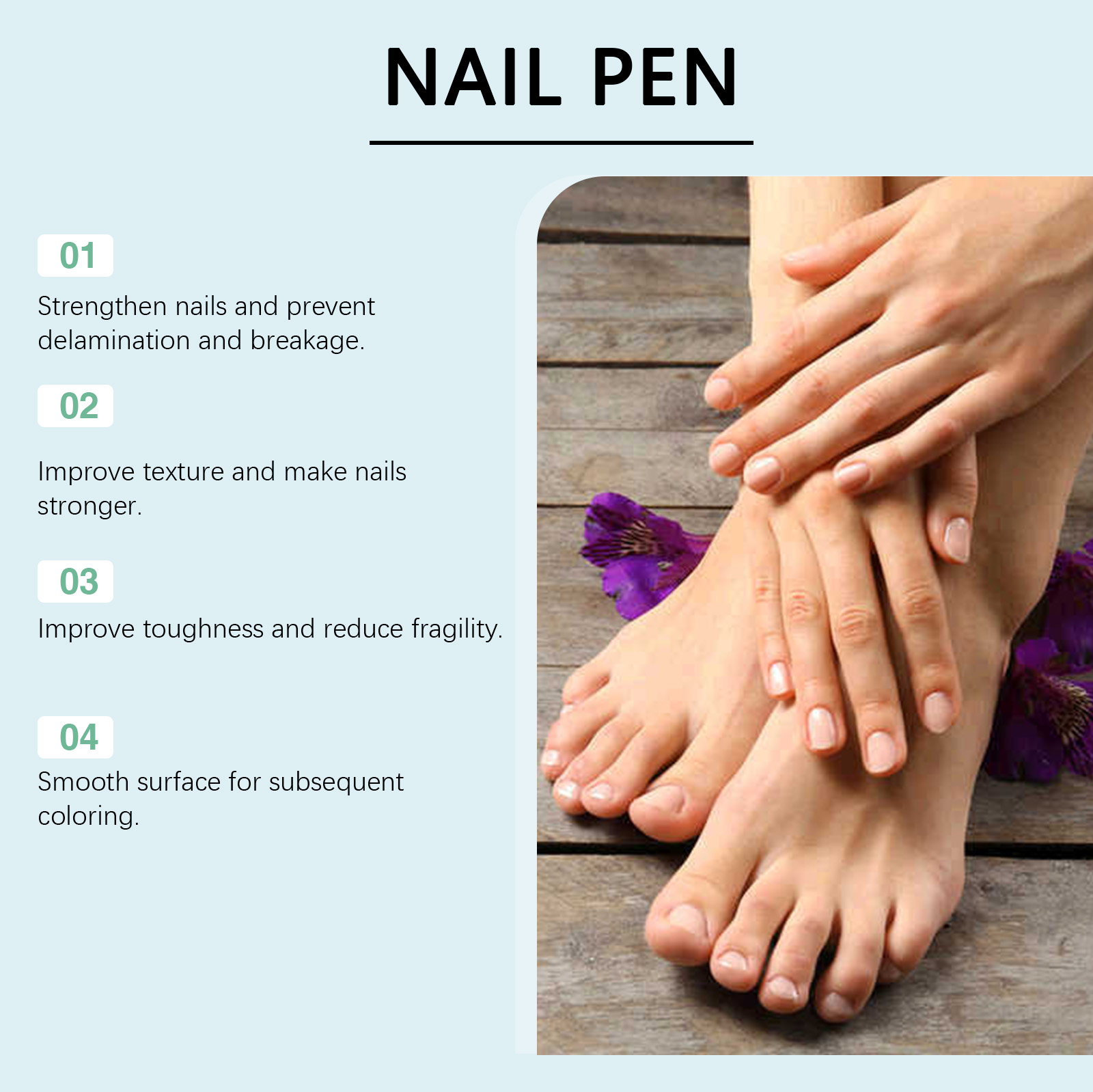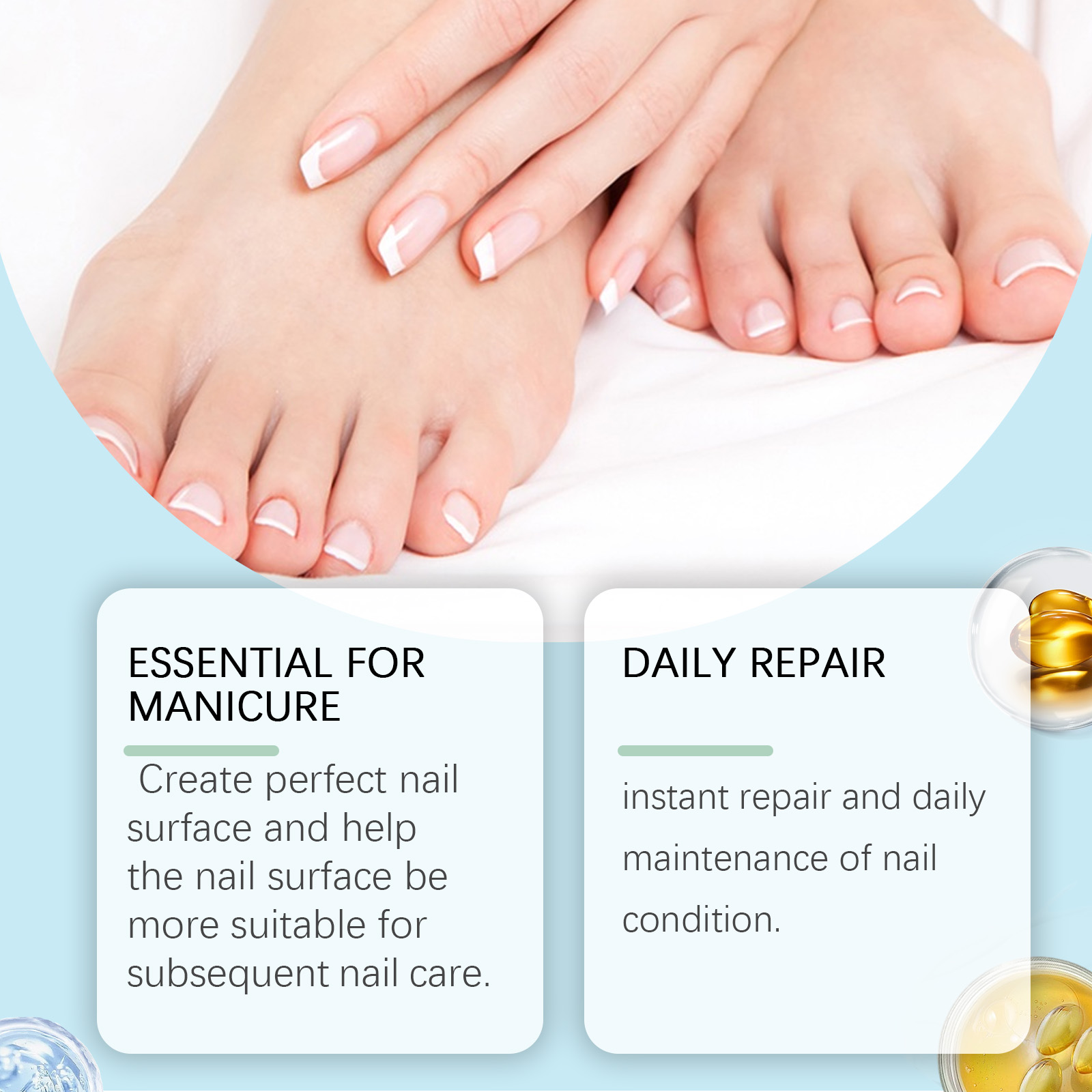 Our nail lotion contains tea leaf oil and tocopherol. It can strengthen the nail structure, significantly improve the resistance of nails to breakage, and reduce the risk of accidental breakage in daily life. Its application is simple: thoroughly clean the surface of the nail and the skin around it, keep it dry, gently apply the product to the affected area of the nail and wait for it to dry. And can be repaired immediately and daily maintenance.