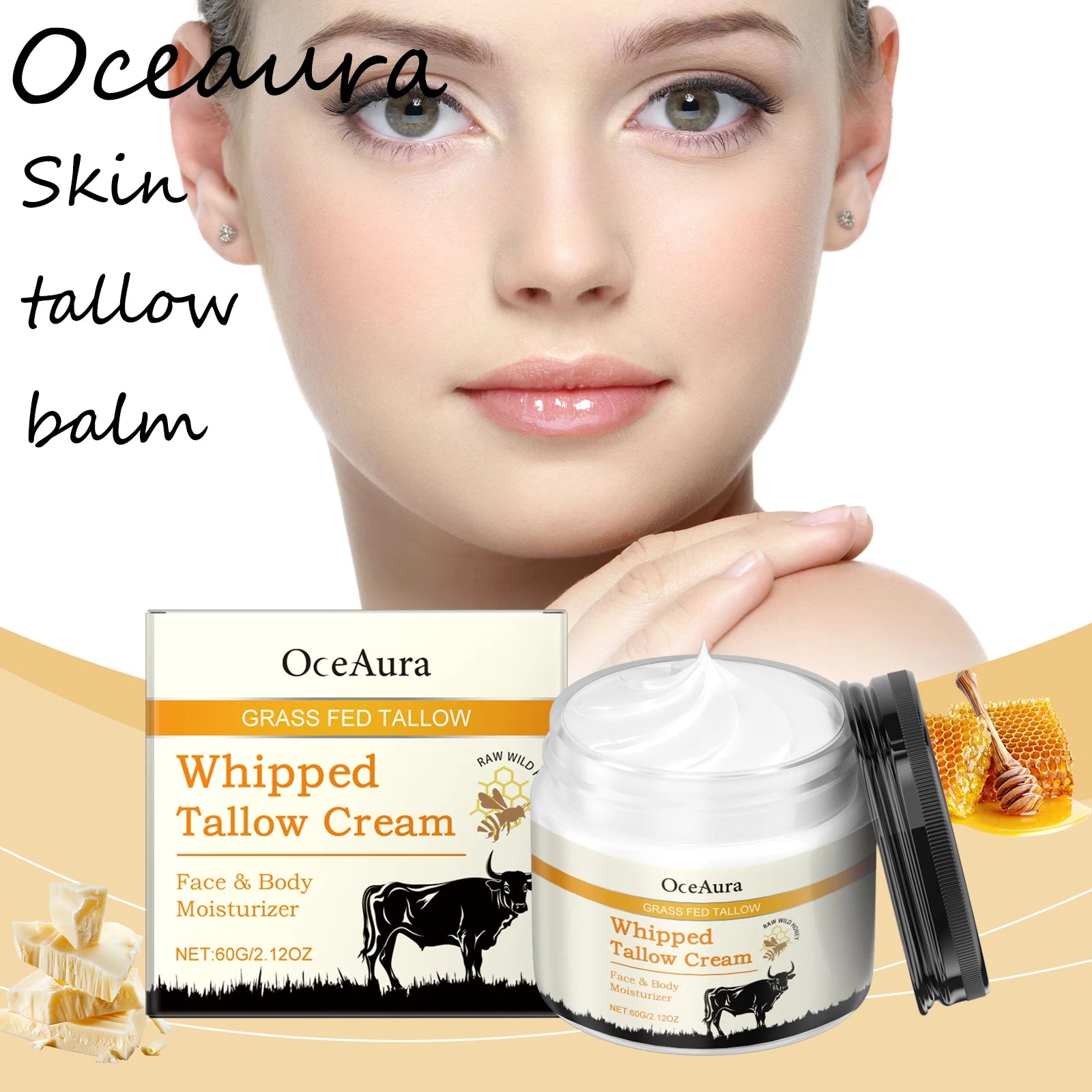 Oceaura Whipped Tallow Balm Moisturizing Reduce Dryness Improve Smoothness Light Fragrance Softening Face Body Skin Tallow Balm