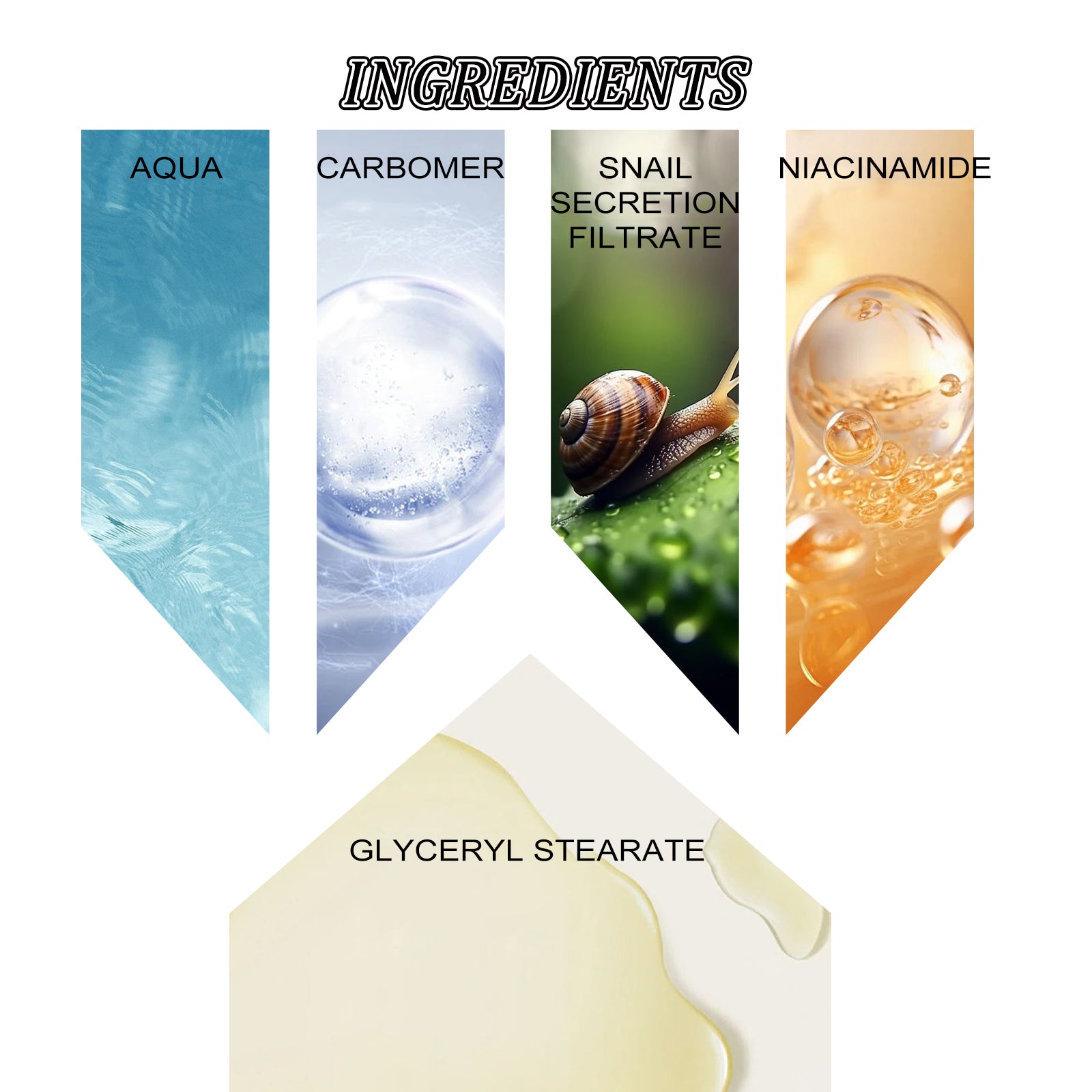 Our snail peptide eye cream contains mineral oil, glycerin stearate, carbomer. It can relieve eye puffiness and eye bags and smooth fine lines, make eye skin firmer, replenish moisture and nutrients needed by eye skin, prevent eye skin from drying out and keep it hydrated. Its use method is very simple: clean under the eyes, take an appropriate amount of eye essence, gently roll with the roller massage, and then gently pat with the fingertips to absorb. It can tighten the skin around the eyes and slow down the aging of the skin.