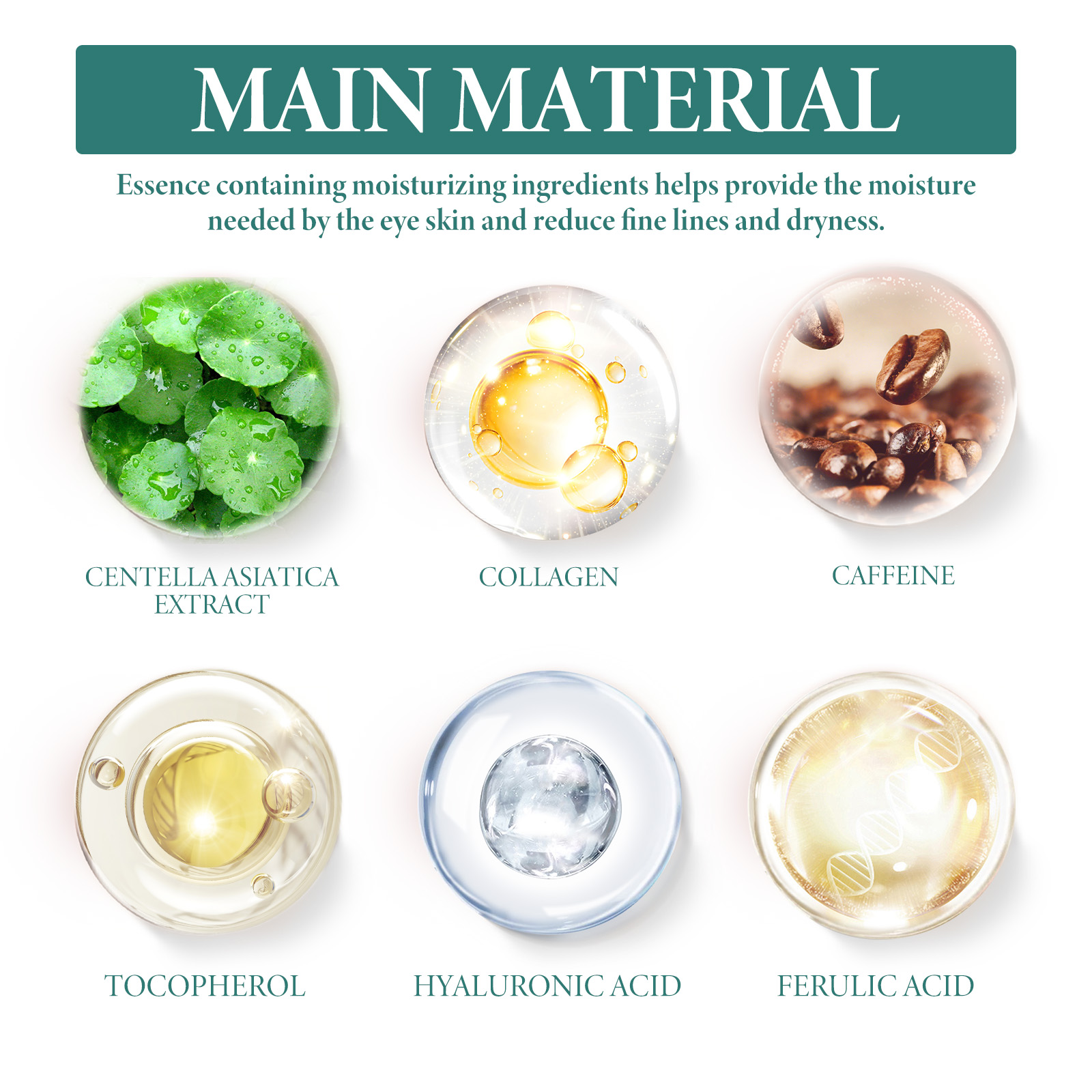 Our Puffy Eye Serum contains Collagen, Caffeine, Centella Asiatica Extract. It can be used to relieve skin discomforts such as redness and itching, moisturize deeply, lock in moisture, create soft skin, reduce puffiness around the eyes, and make the skin around the eyes look firmer. It's easy to apply: Clean and dry your skin, apply a few drops to your pinky and gently pat around your eyes until fully absorbed, then apply your favorite moisturizer for best results. Can effectively soothe the eye skin effect, can reduce eye fatigue and discomfort.