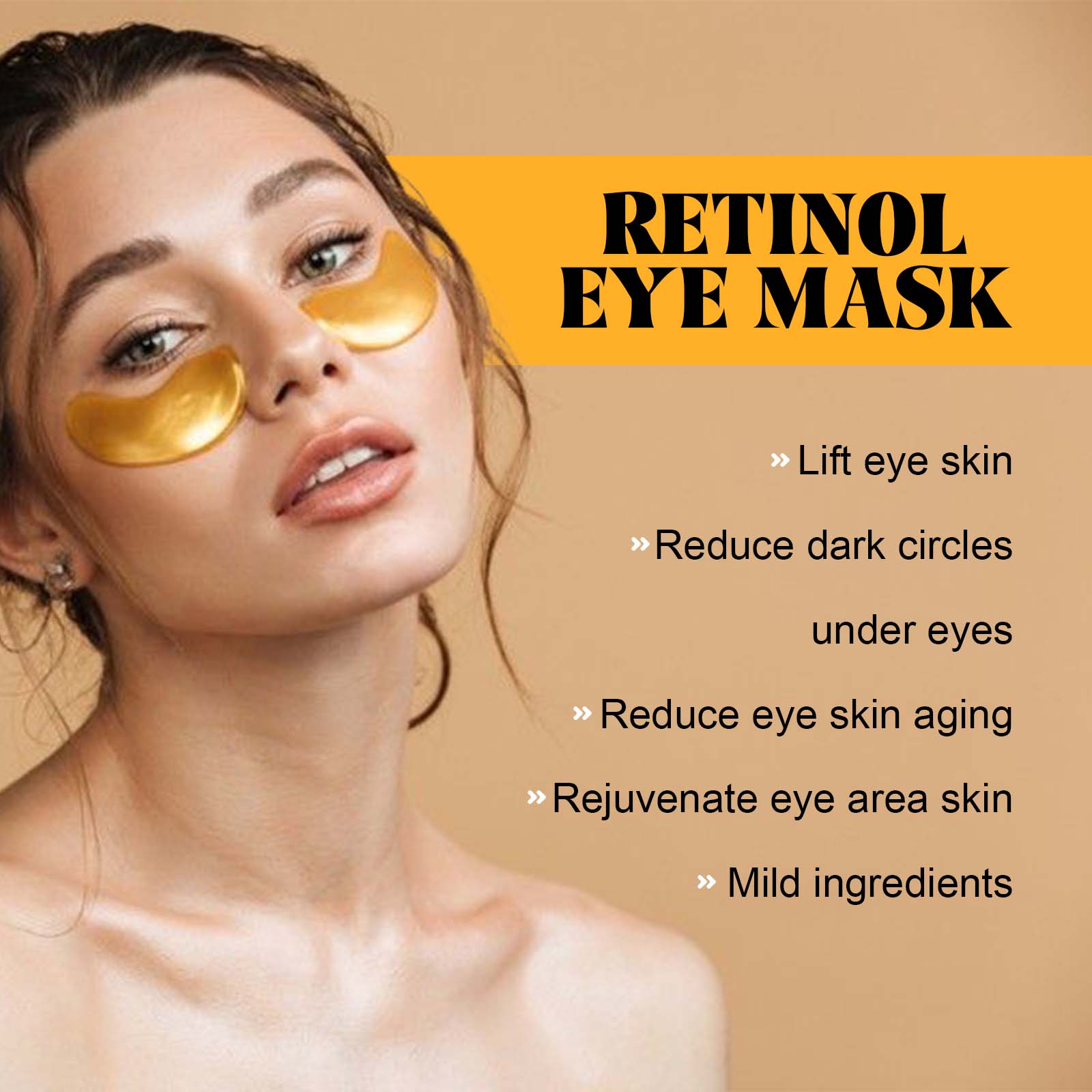 Our retinol eye mask contains glycerin and aloe vera leaf extract. It can enhance the eye skin, reduce dark circles, reduce the eye skin aging young eye area skin. Its use is very simple: the first step: wash your face with warm water. Step 2: Place the eye mask under your eye and press gently to hold the mask in place. Step 3: Wait 15-20 minutes. Step 4: Remove eye mask and wash with warm water. And can help reduce eye wrinkles and dark circles, restore the smoothness of the eye area.