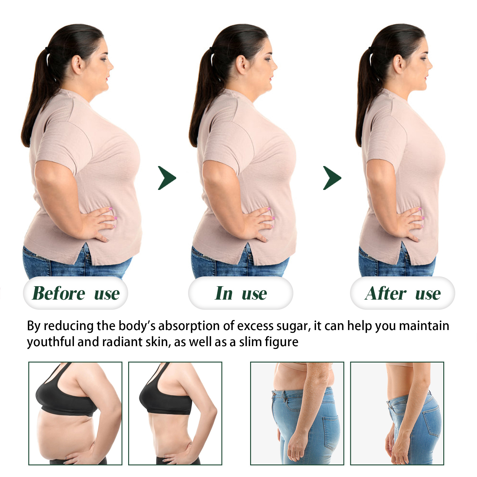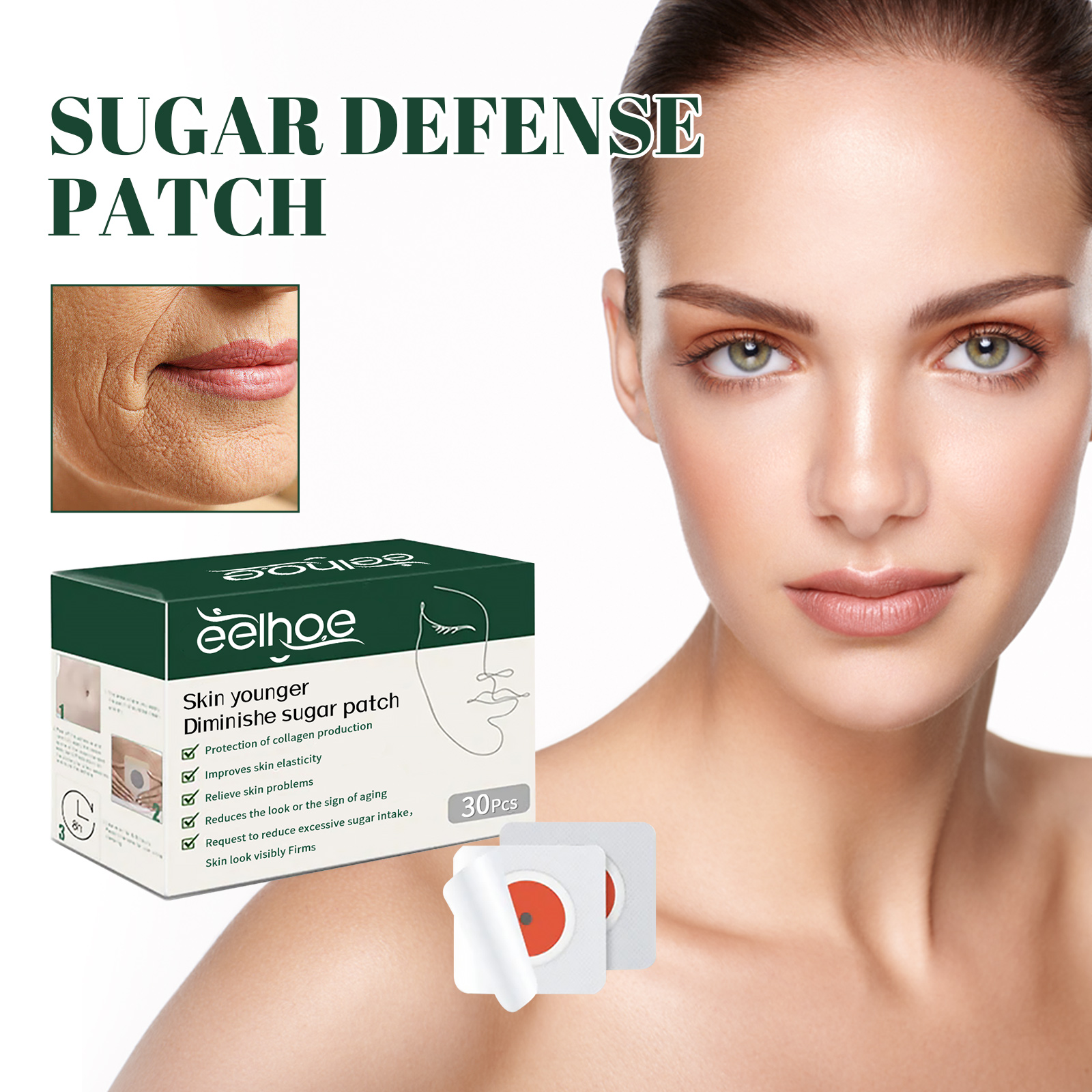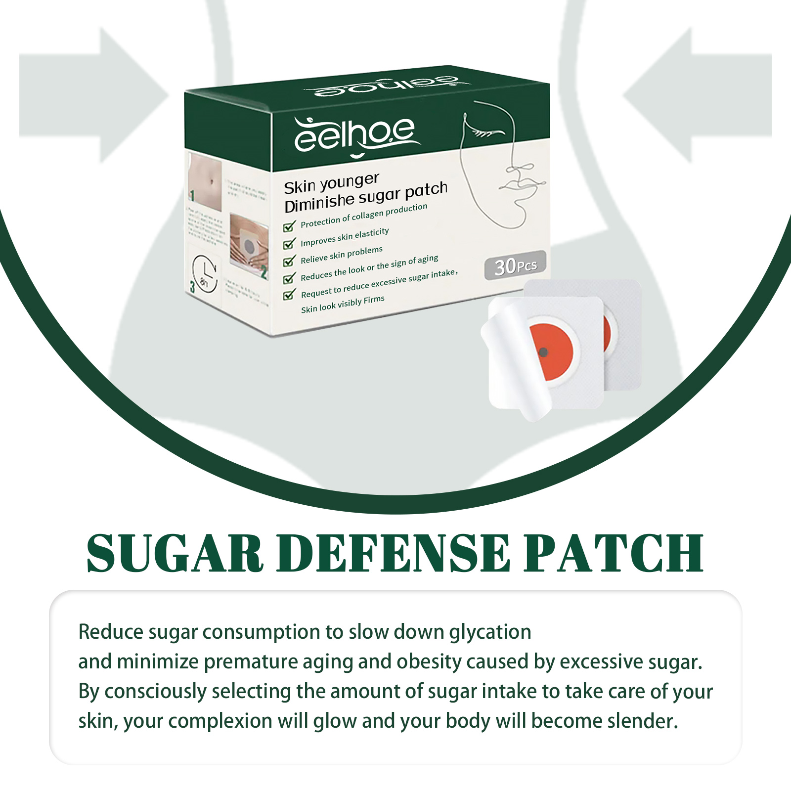 Our Sugared belly button patch contains ginger extract, mugwort extract and angelica extract. It can reduce sugar intake, slow glycosylation, and reduce premature aging and obesity caused by excess sugar. By consciously choosing your sugar intake to take care of your skin, your complexion will glow and your body will become slimmer. The way to use it is simple: before going to bed, stick it to your belly button and let it work while you rest. After about 8 hours, carefully remove. Clean your belly button with a damp towel. By reducing the body's absorption of excess sugar, it can help you maintain youthful and glowing skin, as well as a slim figure.