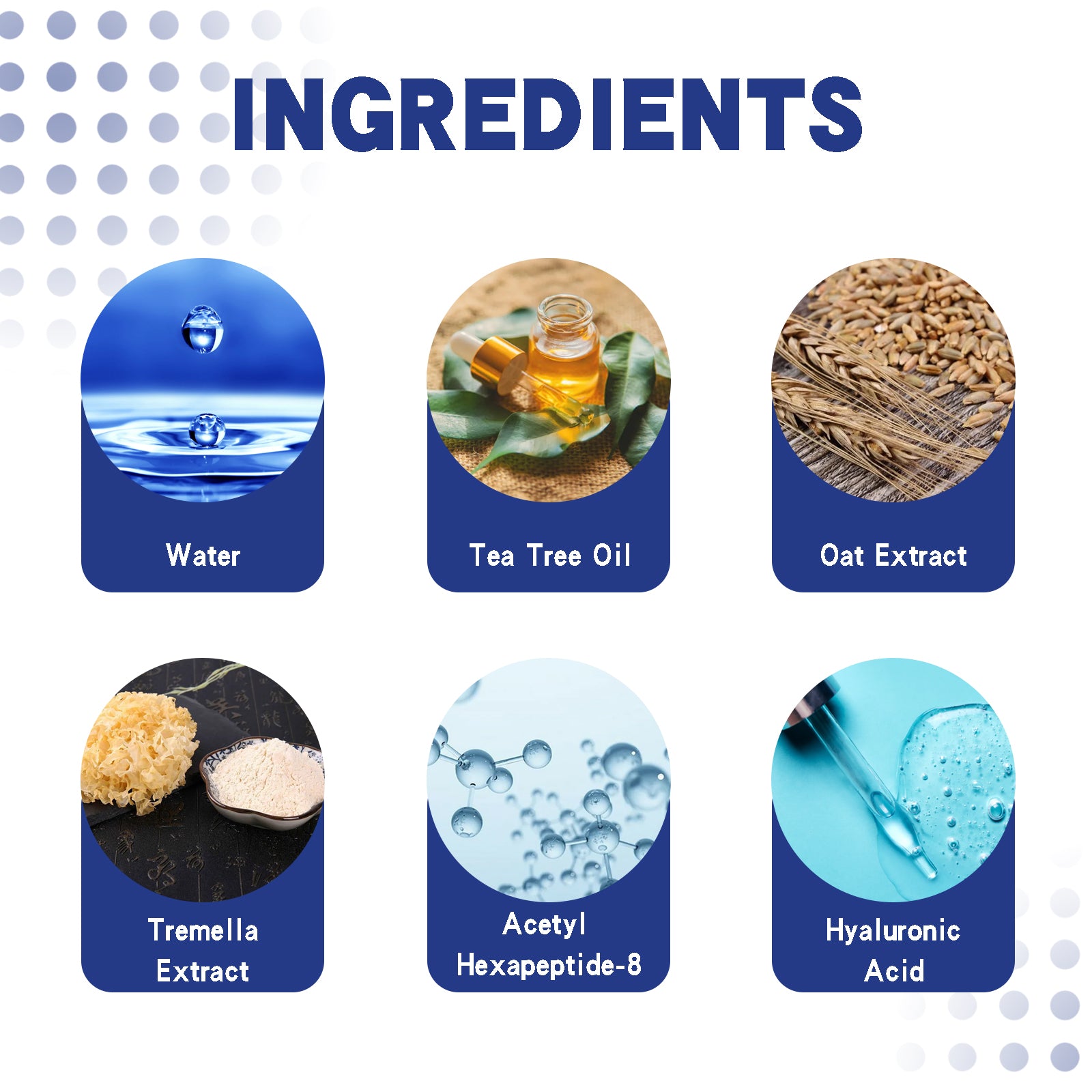 Our Tea Tree Hexapeptide Firming Eye Cream contains tea tree oil, oat extract, tremella extract. It can effectively brighten the skin, anti-aging, instantly brighten and tighten the eye skin, lock the moisture around the eyes, improve dry and fine lines, its use method is very simple: after cleansing and toning, take a mung bean-sized eye cream on the fingertips, evenly apply it to the skin under the eyes, and gently massage it along the eye circumference with the fingertips until absorbed. Use daily for best results. Long-term use reduces fine lines, wrinkles and puffiness to improve the overall appearance of the eyes.