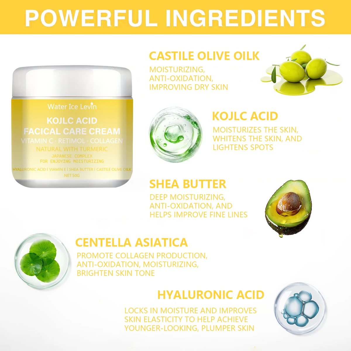 Winter Kollc Acid Brightening Cream - Vitamin C & Retinol Formula, Hydrates & Smooths Skin, With Shea Butter & Olive Oil